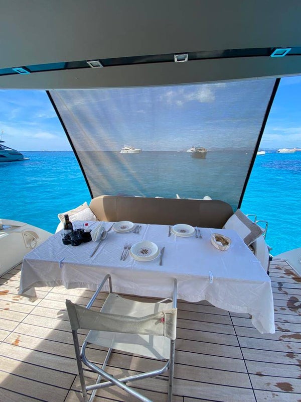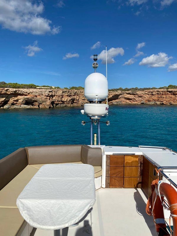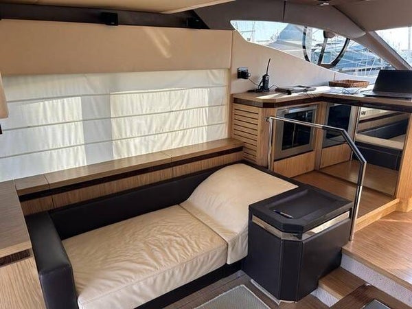 Passerella - Rivestimento in pelle chaise longue e divano salone - Cassaforte - Tavolo teak a scomparsa in pozzetto - Piano cottura vetroceramica 3 fuochi - Forno microonde - Frigorifero cucina 200 lt - Frigorifero fly 65 lt - Frigorifero salone 50 lt - Lavastoviglie - Mobile fly completo con lavello - Tonneggi di poppa - TV cabina armatore + DVD - TV cabina prua + DVD - TV salone a scomparsa 32" - Zanzariere - Plancia di poppa affondabile - Scaletta bagno - Finestra ventaglio lato bar e pilota - Tendalino fly manuale + kit estensione poppa - Telo chiusura pozzetto - Telo copertura consolle e parziale copertura fly - Luci sub blu - Radio cabina ospiti e vip - Fari ormeggio - Sistema centralizzato aspiratore - Aria condizionata - Generatore Mase - Doppio tergicristallo elettrico