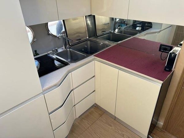 La Sessa Marine F54 è uno yacht a motore flybridge di circa 16 metri che unisce eleganza italiana, comfort e prestazioni sportive. Offre ampi spazi esterni e interni luminosi, con tre cabine, due bagni e una zona living accogliente. Ideale per crociere in famiglia o con amici, garantisce navigazione stabile, manovrabilità semplice e uno stile moderno e raffinato.
